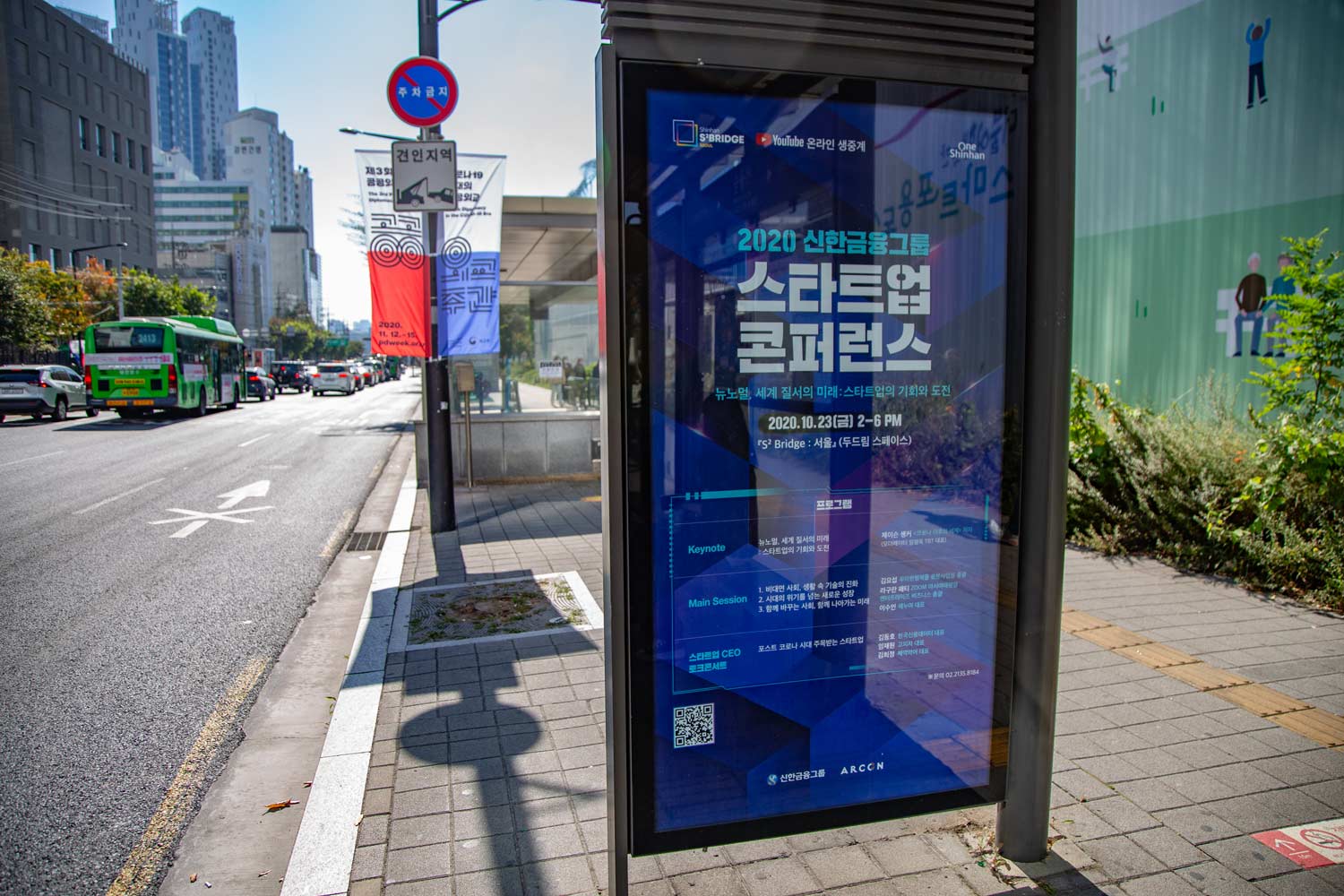 Poster and application graphics for SHINHAN Group's startup conference.