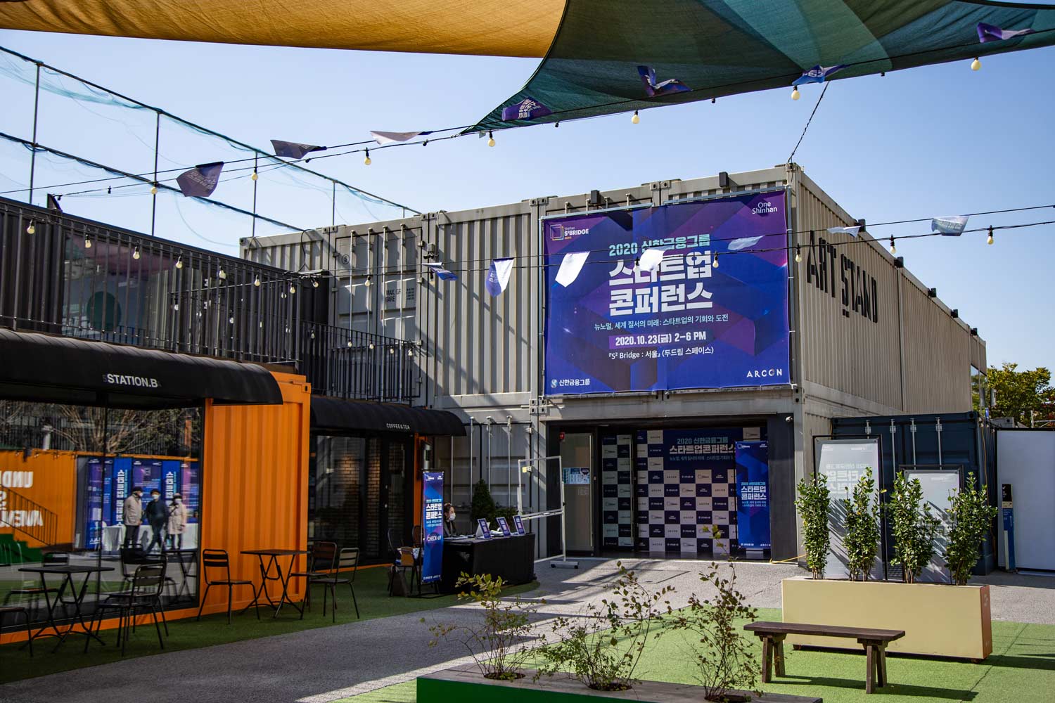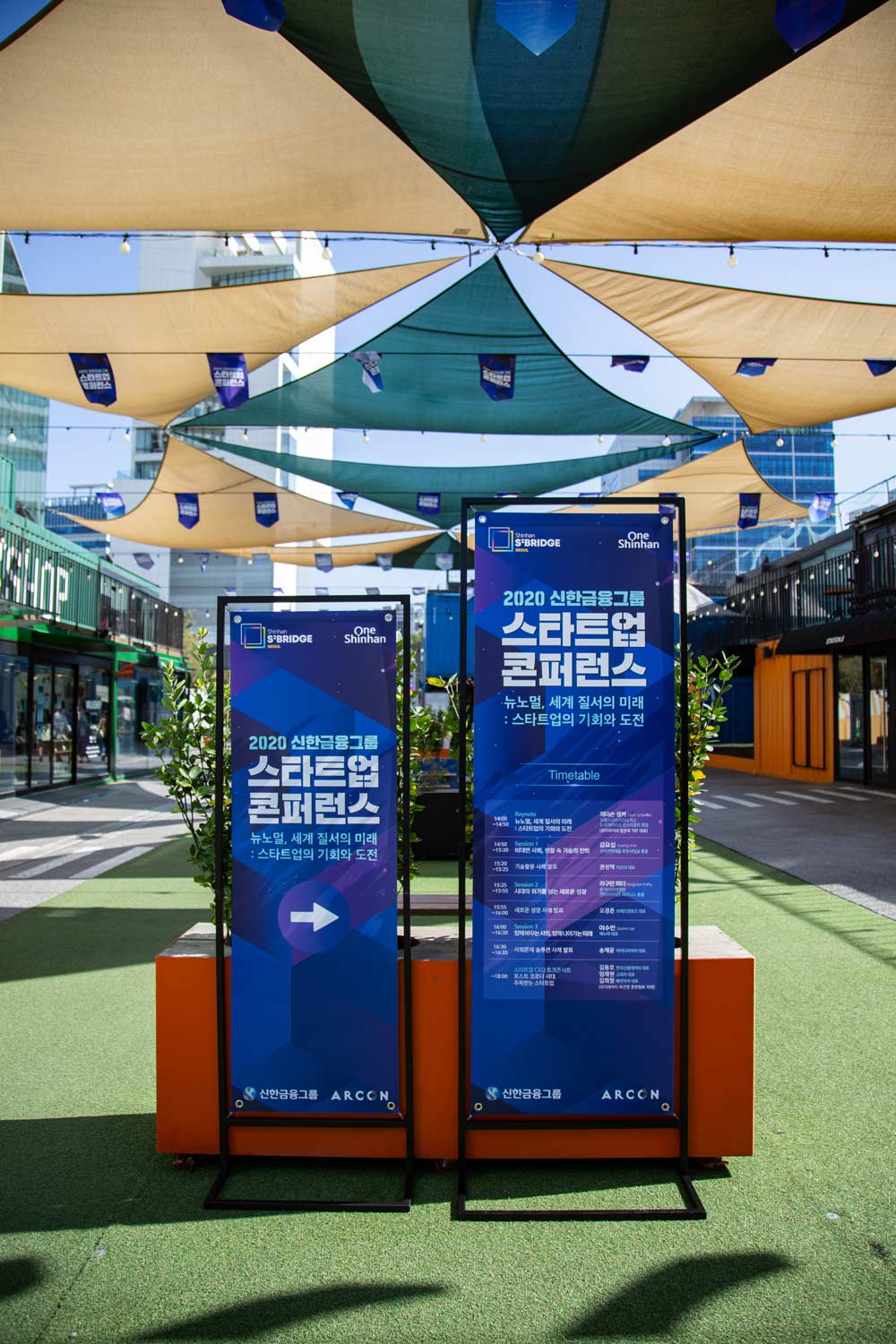 신한금융그룹에서 주최한 스타트업 컨퍼런스를 위한 포스터 및 애플리케이션 그래픽 디자인입니다.